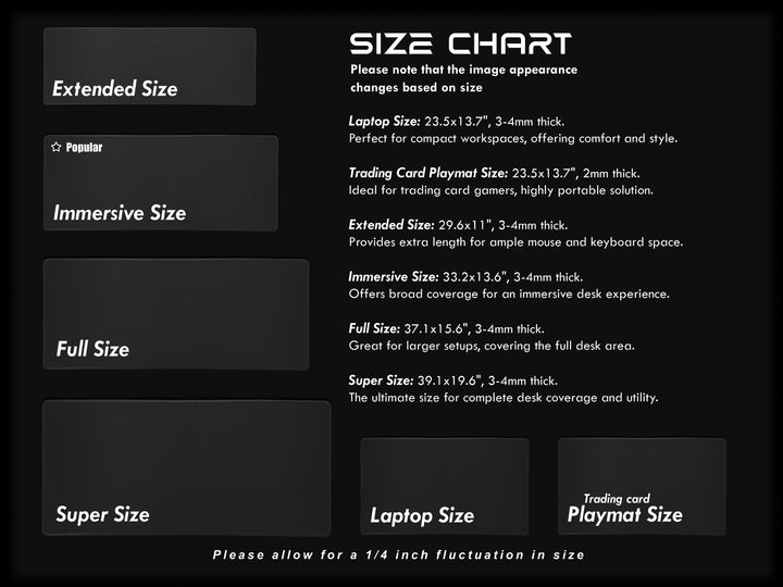 -Card Playmat Size: 23.5x13.7", 2mm thick.
